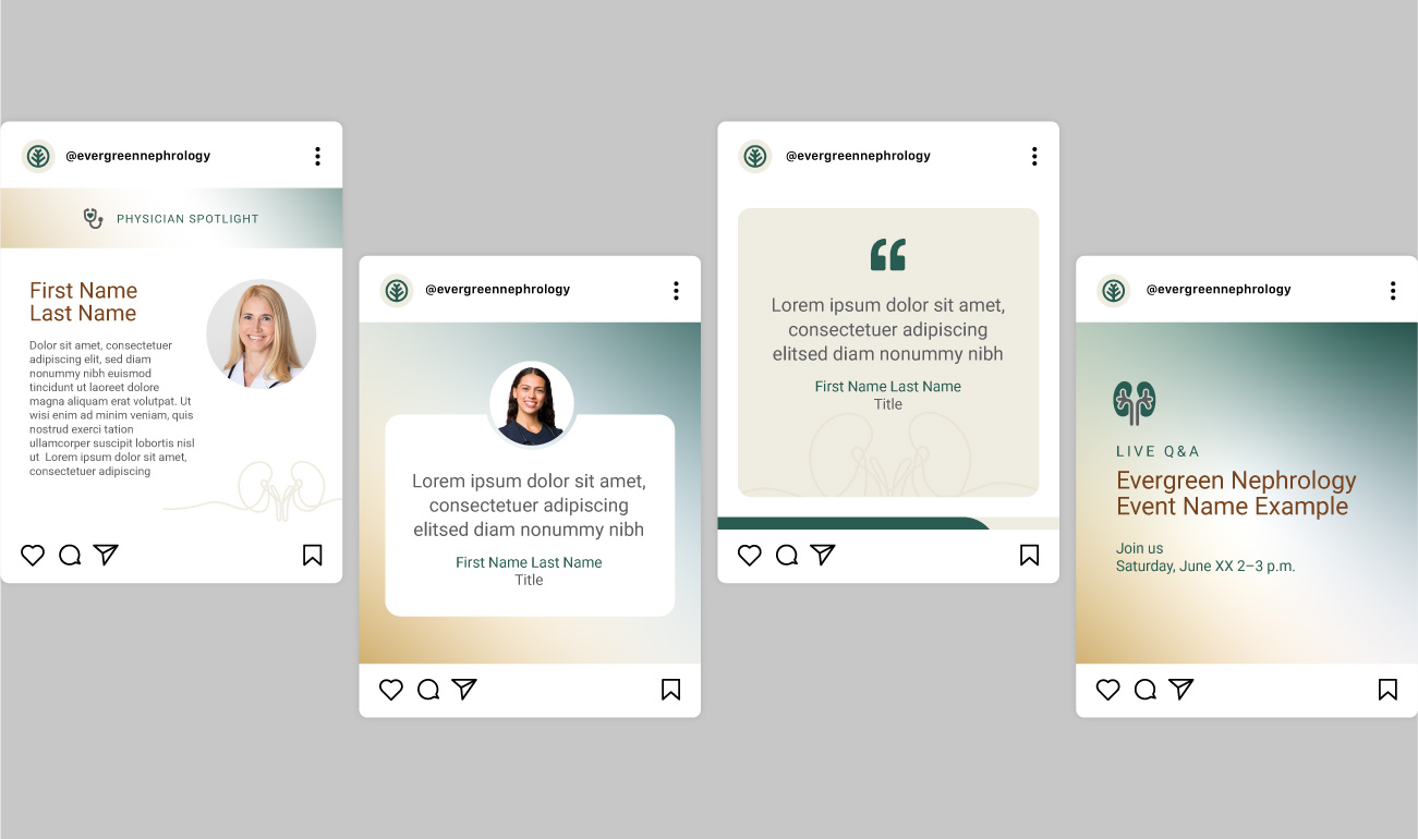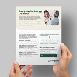 Prior to partnering with Creative Department, Evergreen Nephrology no longer reflected with maturity and sophistication of their operations, partnerships or patient experience. I worked with Creative Department to develop a visual style that is clear and cohesive across all communications.